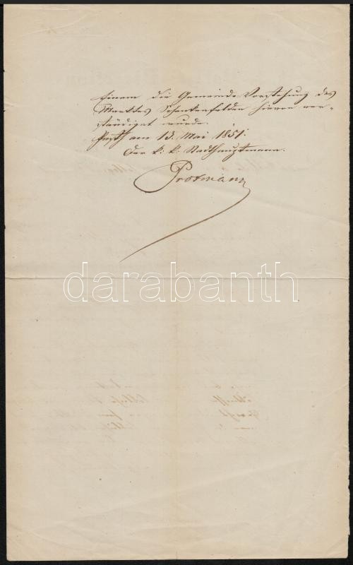 https://www.darabanth.com/en/306-Online-auction/306.0/Other-collectibles/Documents~100019/1851-Pest-rendorkapitanyi-fejleces-level-nemet-nyelven~II1651184
