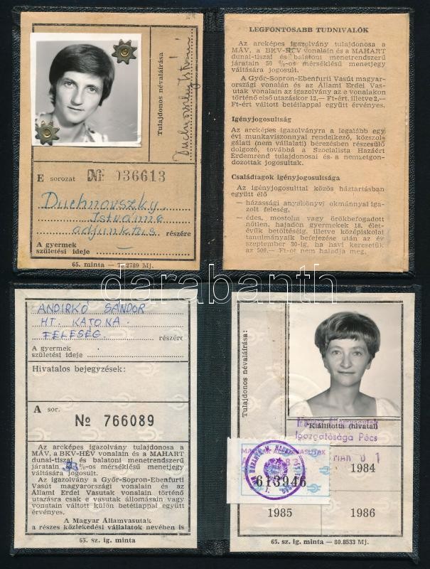 1951-1983 MÁV arcképes igazolvány közszolgálati alkalmazottak és családtagjaik részére, 6 db