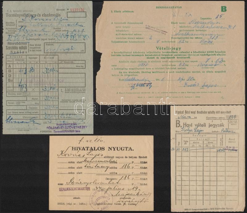 cca 1944-1946 4 db beszolgáltatási papír, vételi jegyzék, vételi jegy