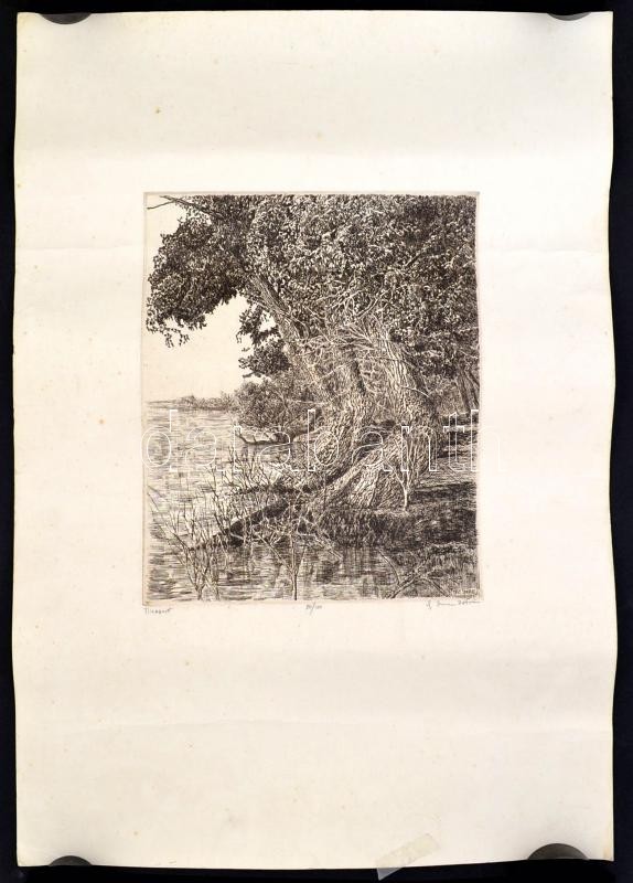 Ifj. Imre István (1950-) 2 db rézkarca: Tiszapart+Liget, rézkarc, papí...