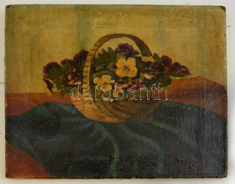 Koszta jelzéssel: Virágkosaras csendélet, olaj, vászon, 36,5×45,5 cm