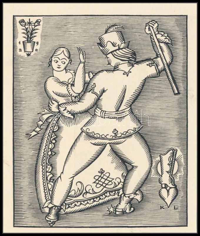 Kozma Lajos (1884-1948): Menyasszonytánc, fametszet, papír, jelzett a fametszeten, kartonra ragasztva, 13×11 cm