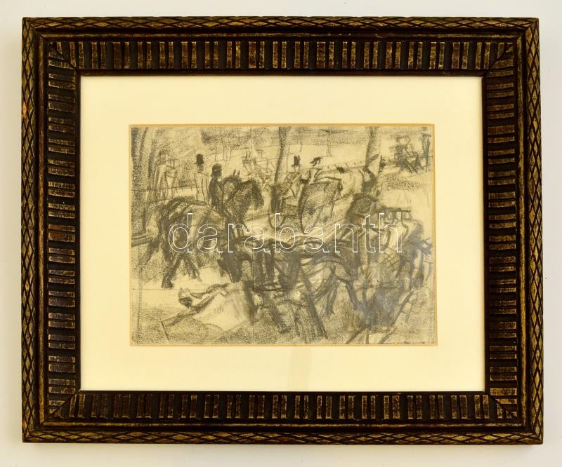 Monostori Moller Pál (1894-1978): Tanulmány rajz. Szén, papír, hajtott, jelzés nélkül, üvegezett keretben, 15×20 cm