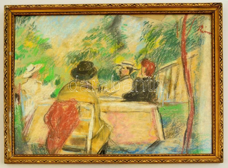 Rónai jelzéssel: Kertben, pasztell, papír, üvegezett fa keretben, 29,5...