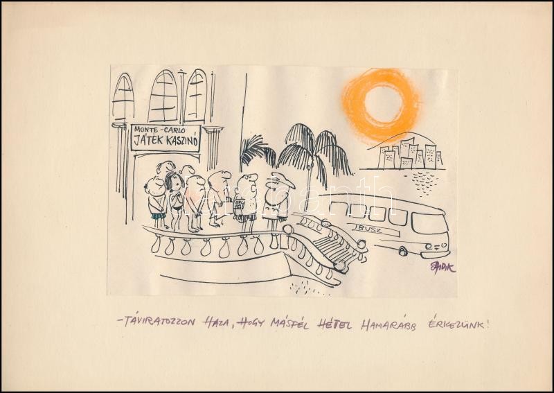 Sajdik Ferenc (1930- ): Megjelent karikatúra, vegyes technika, papír, jelzett. Rajz mérete: 19x13 cm