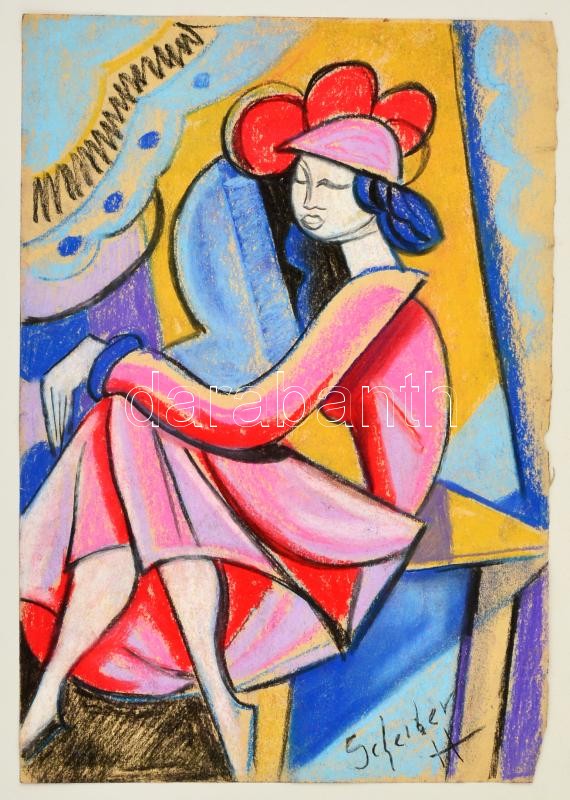 Scheiber jelzéssel: Ülő nő, pasztell, papír, 44×30,5 cm