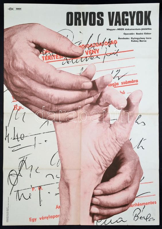 https://www.darabanth.com/en/306-Online-auction/306.0/Other-collectibles/Poster~500021/1980-Orvos-vagyok-magyar-nszk-dokumentum-jatekfilm-plakat-rendezte-Gyongyossy-Imre-Kabay-Ba~II1653298