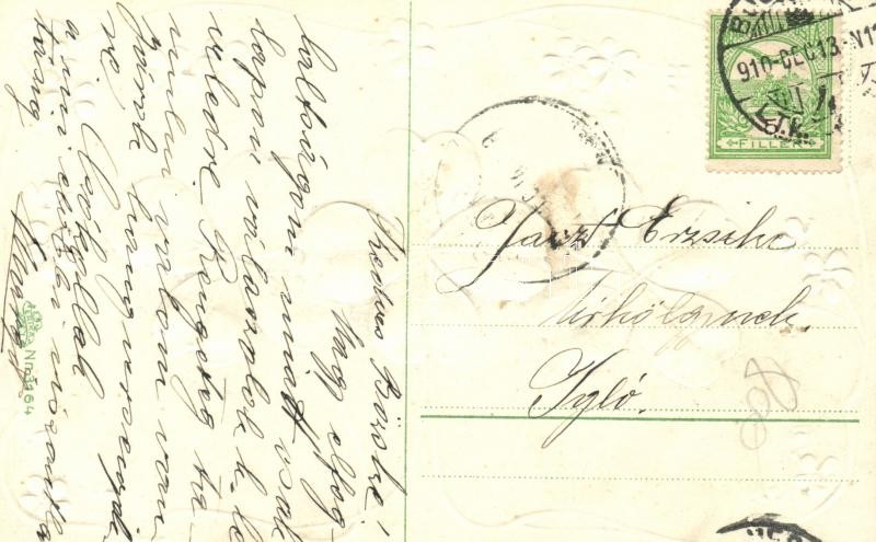 Clovers, floral Emb. litho greeting card, Erika Nr. 3164