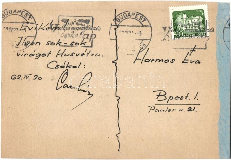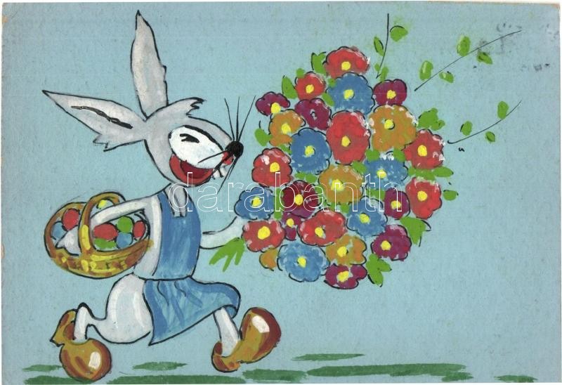 1962 Kézzel festett húsvéti üdvözlőlap / Hand-painted Easter greeting ...