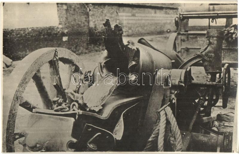 Első világháborús katonai fotó képeslap, ágyúcsőben felrobbantott löve...