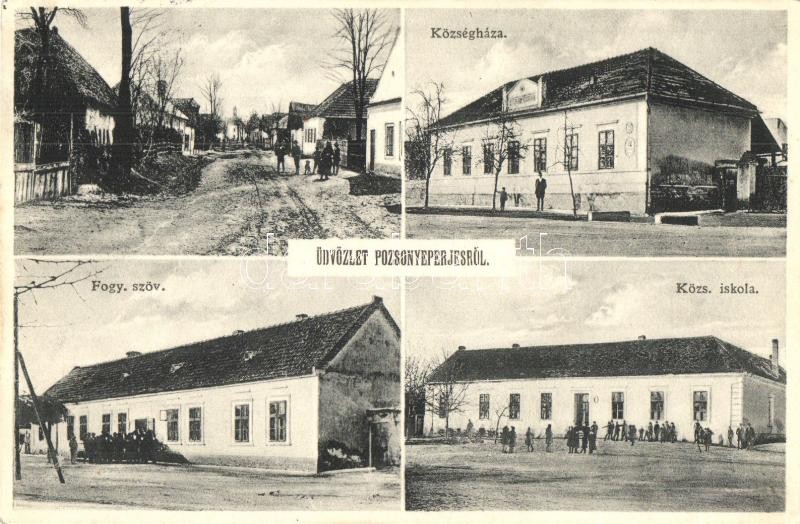Pozsonyeperjes, Jahodna; utcakép, községháza, községi iskola, fogyaszt...