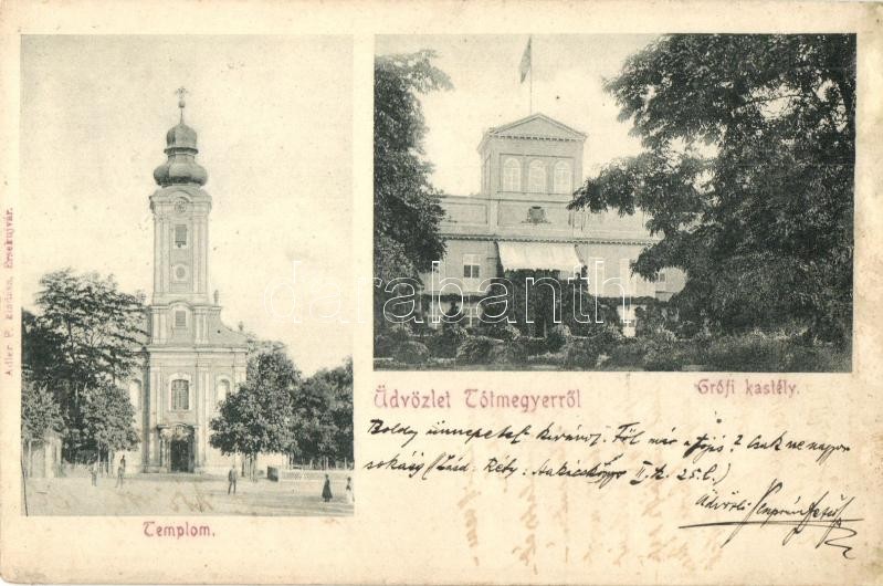 Tótmegyer, Slovensky Meder, Palárikovo; Gróf Károlyi kastély, templom. Adler F. kiadása / castle, church (r)