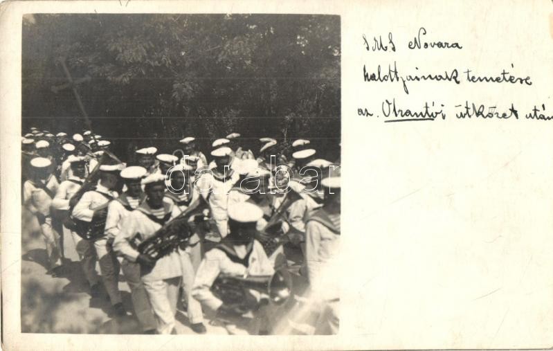 Description: 1917 Az SMS Novara, K.u.K. haditengerészet Helgoland-osztályú gyorscirkáló halottainak menete, az otranto-i csatában elhunyt haditengerészek temetése matróz bandával / funeral of K.u.K. mariners of SMS Novara after the Battle of Otranto, mariners' music band. photo