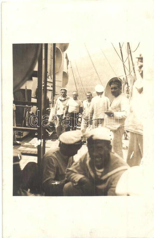 SMS Aspern osztrák-magyar Zenta-osztályú védett cirkáló matrózai a fedélzeten / K.u.K. Kriegsmarine, mariners of SMS Aspern, photo