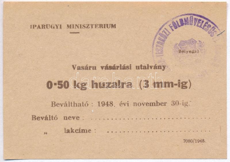 https://www.darabanth.com/en/307-Online-auction/307.0/Numismatics/Emergency-Coins-and-Notes~300006/1948-Vasaru-vasarlasi-utalvany-0-5kg-huzalra-3mm-ig-kitoltetlen-belyegzessel-TI-~II1667195