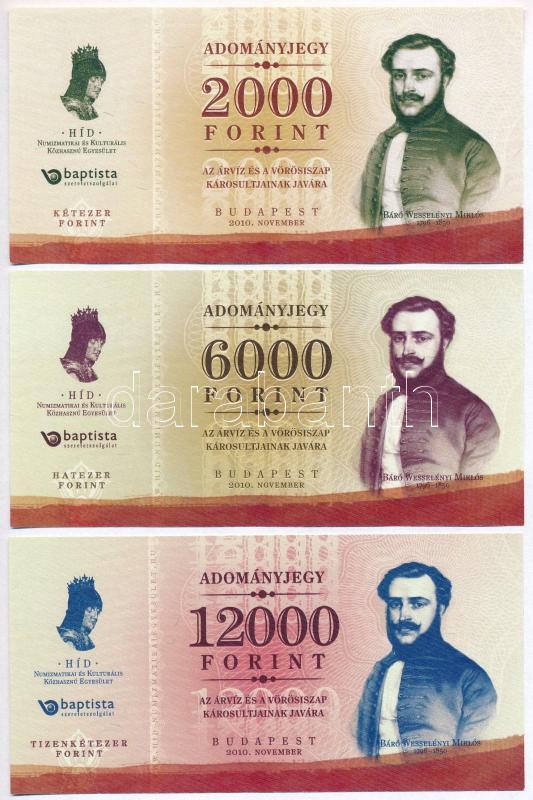 Budapest 2010. 2000Ft + 6000Ft + 12000Ft "Adományjegy az árvíz és a vörösiszap károsultjainak javára" T:I