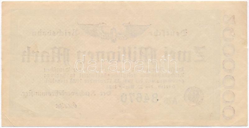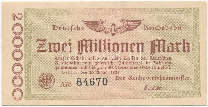 Description: Németország / Weimari Köztársaság / Birodalmi vasút 1923. 2.000.000M T:III-
