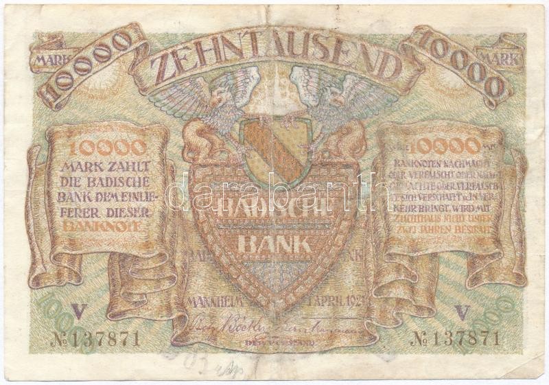 Germany / Weimar Republic / Mannheim 1923. 10.000 Mark necessity note on watermarked paper C:F