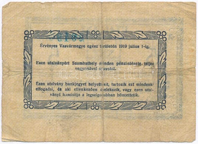 Szombathely 1919. 5K "Szombathelyi Takarékpénztár R.T." utalvány T:III-