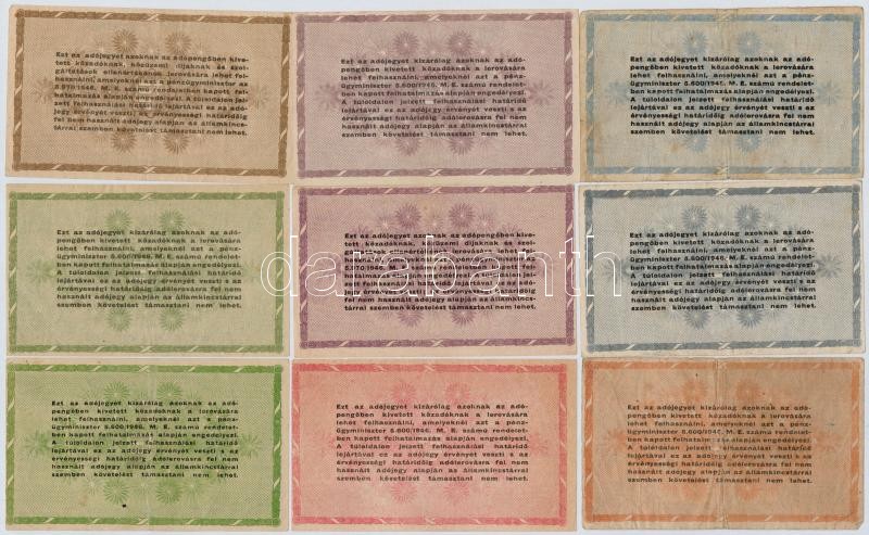 1946. 10.000AP + 50.000AP (2x) egyik sorszámmal + 100.000AP (2x) egyik sorszámmal + 500.000AP + 1.000.000AP fordított címerrel + 10.000.000AP + 100.000.000AP T:III,III-
