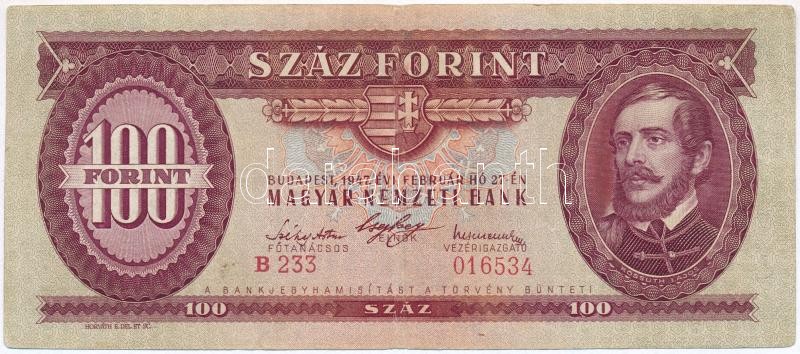 1947. 100Ft kissé eltolódott hátlapi nyomat T:III
