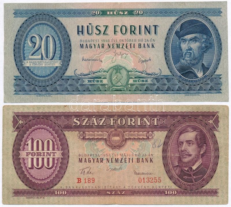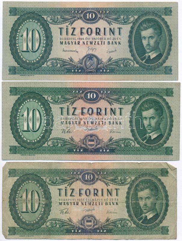 1949. 10Ft + 20Ft + 1957. 10Ft (2x) + 100Ft T:III közte szép papír