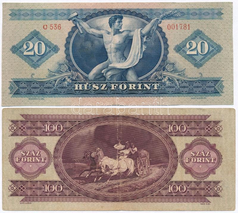 https://www.darabanth.com/en/307-Online-auction/307.0/Numismatics/Hungarian-Banknotes~300007/1949-10Ft-plus-20Ft-plus-1957-10Ft-2x-plus-100Ft-TIII-kozte-szep-papir~II1659280