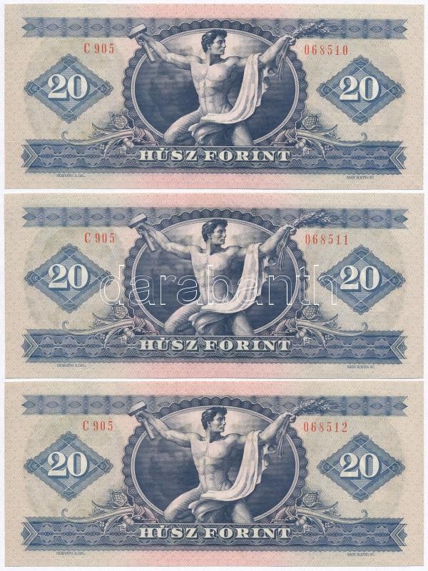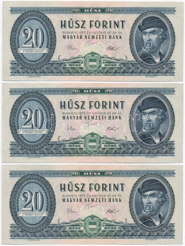 1975. 20Ft (3x) sorszámkövetők, nyomdai papírráncokkal T:I