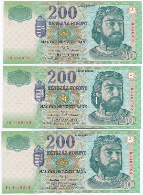 2001. 200Ft (3x) benne sorszámkövető pár és egyugrásos sorszámkövető, "FB 4469391 - FB 4469394" T:II