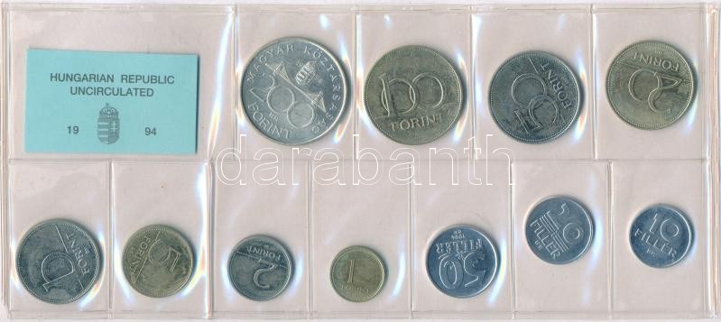 1994. 10f-200Ft (11xklf) érmés forgalmi sor fóliatokban, közte 1994. 2...