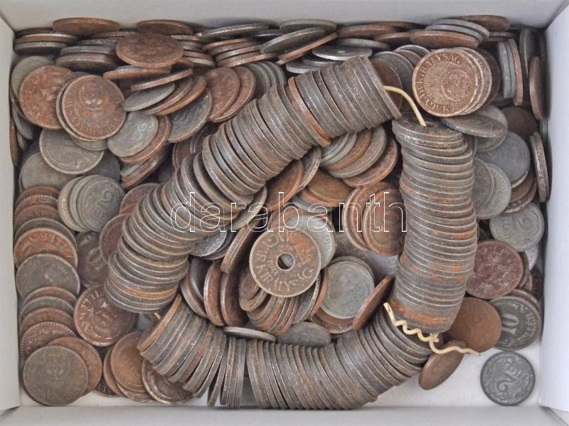 Description: Vegyes magyar fémpénz tétel a főleg a pengő háború alatti korszakából, néhány Al pengő érme, azon kívül fillérek, ~1,8kg súlyban. Nagyrészt átnézetlen tétel, érdemes megtekinteni! T:vegyes