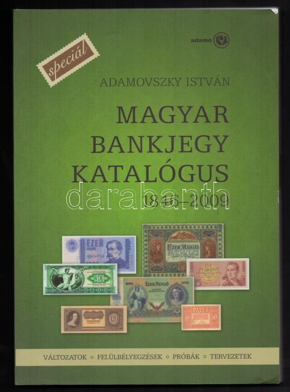 Adamovszky István: Magyar bankjegy katalógus SPECIÁL - változatok, fel... https://www.darabanth.com/en/307-Online-auction/307.0/Numismatics/Numismatics-Literature~300002/Adamovszky-Istvan-Magyar-bankjegy-katalogus-SPECIAL--valtozatok-felulbelyegzesek-probak~II1641973