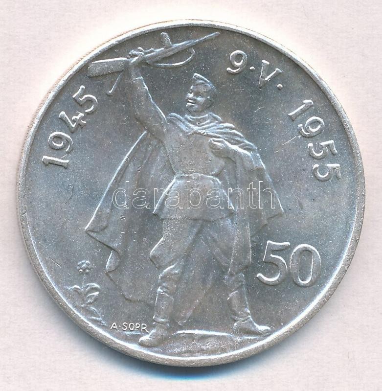 https://www.darabanth.com/en/307-Online-auction/307.0/Numismatics/Worldwide-silver-and-metal-coins~300013/Csehszlovakia-1955-50K-Ag-Felszabadulas-10-evforduloja-T1---Czechoslovakia-1955-50-Korun-A~II1665818