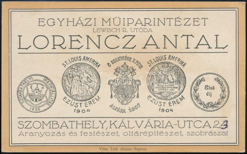 Lorencz Antal Egyházi Műiparintézet reklámkártya, Szombathely