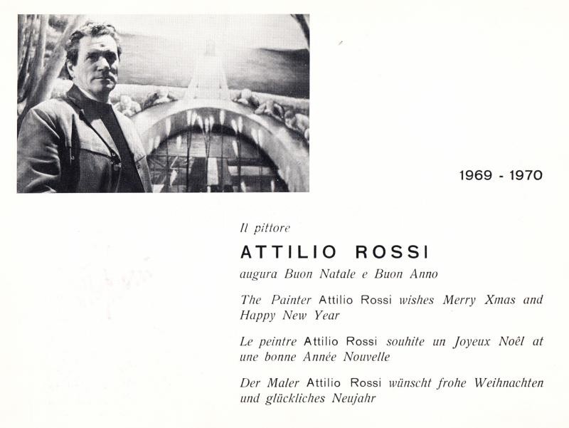 Attilio Rossi (1909-1994) olasz festő aláírása üdvözlőkártyán
