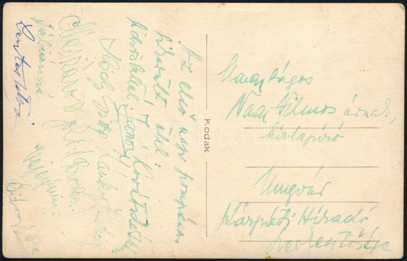Az ungvári Kárpáti Híradó szerkesztőségébe küldött, a szerkesztőség munkatársai által aláírt fotólap (Hódy Gitta, Zánky Hedvig, stb.)