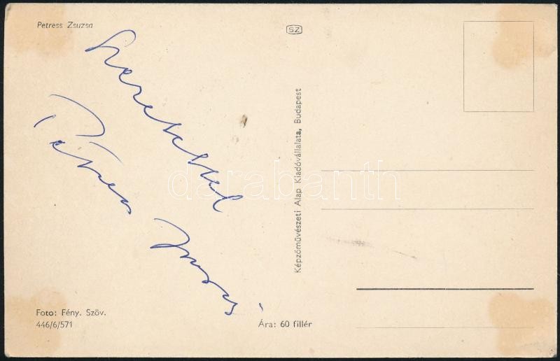 https://www.darabanth.com/en/307-Online-auction/307.0/Other-collectibles/Autographs~19/Petress-Zsuzsa-szinmuveszno-alairasa-ot-abrazolo-kepeslapon-9x14-cm~II1663212