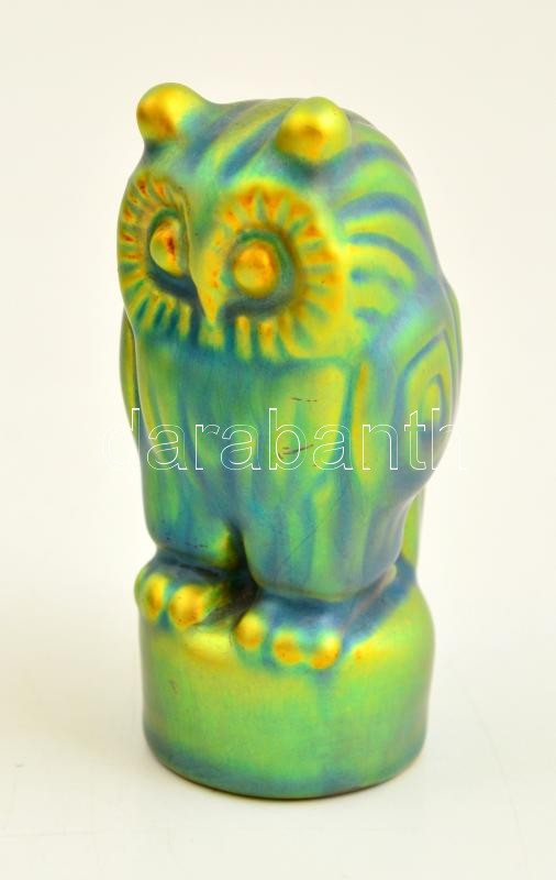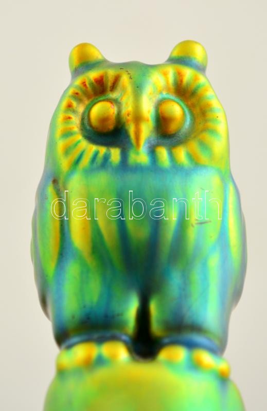 Zsolnay eozin mázas bagoly, jelzett, kopásnyomokkal, m: 8 cm