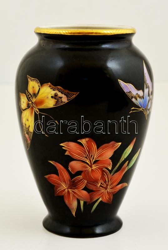 Zsolnay pillangó mintás váza, kézzel festett, jelzett, hibátlan, m:15 ...