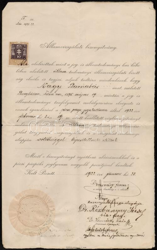https://www.darabanth.com/en/307-Online-auction/307.0/Other-collectibles/Documents~17/1922-Pecsi-jogakademia-allamtudomanyi-vizsga-bizonyitvany~II1660099