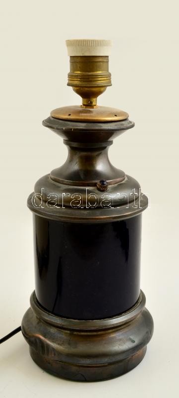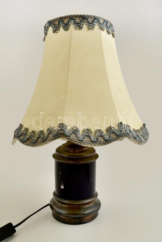 Asztali lámpa, működik, selyem burával, fém és zománc testtel, kis hor...