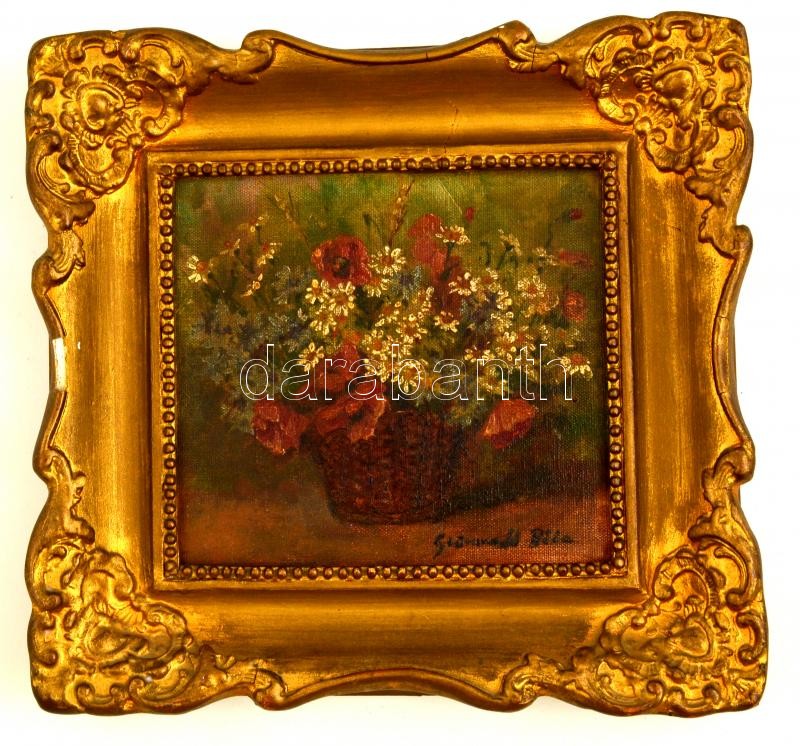 Grünwald jelzéssel: Virágcsendélet. Olaj, vászon, sérült keretben, 12×...