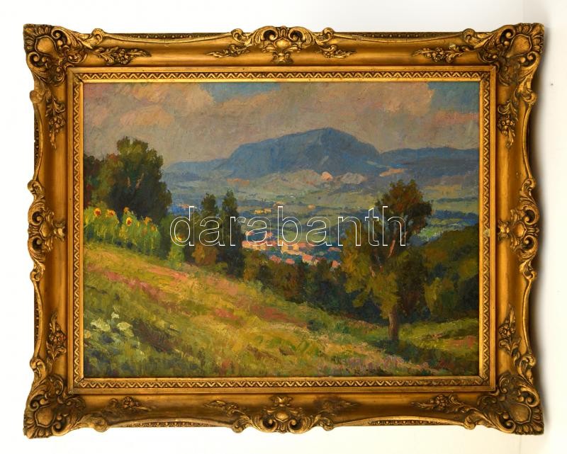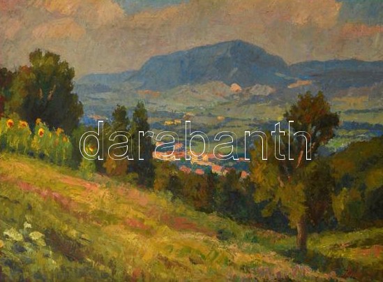 Gyelmis Lukács János (1899-1979): Kilátás a hegyről. Olaj, vászon, jel...