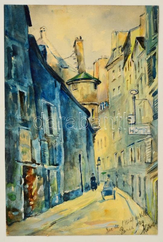 https://www.darabanth.com/en/307-Online-auction/307.0/Other-collectibles/Paintings-and-graphics~2/Koves-jelzessel-Rue-de-lHC3B4tel-de-Ville-papir-akvarell-18x27-cm~II1665667
