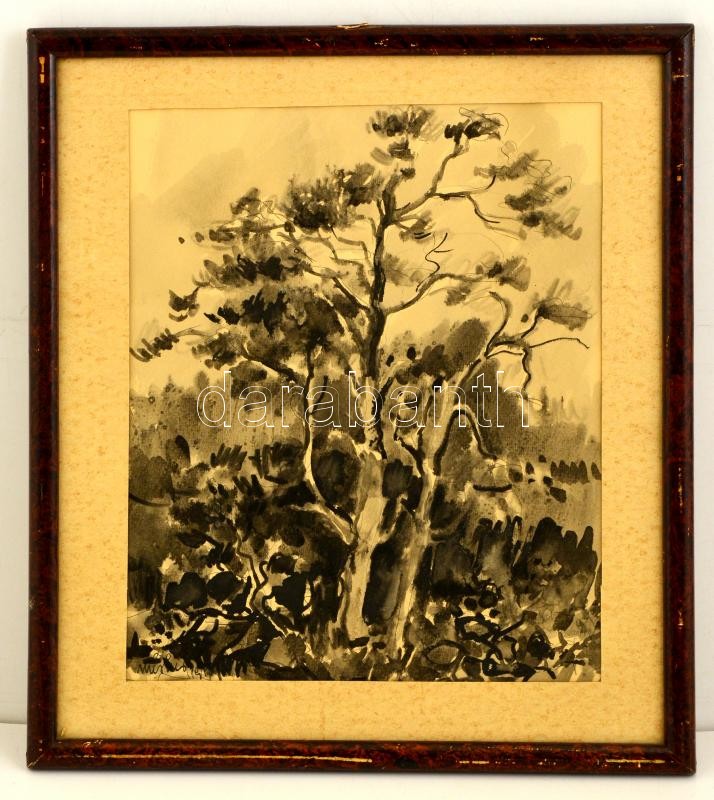 Olvashatatlan jelzéssel: Fa, tus-akvarell, paszpartuban, üvegezett fa keretben, 37×30 cm