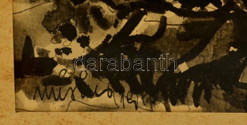 Olvashatatlan jelzéssel: Fa, tus-akvarell, paszpartuban, üvegezett fa ...