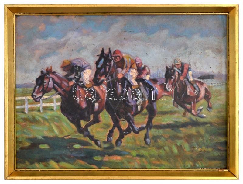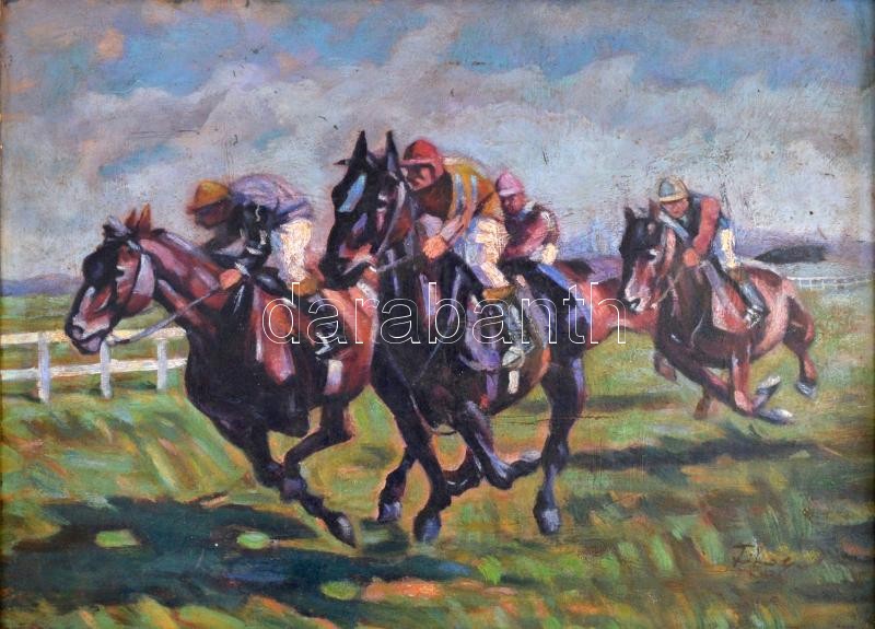 Olvashatatlan jelzéssel: Lóverseny. Olaj, karton, keretben, 30×42 cm