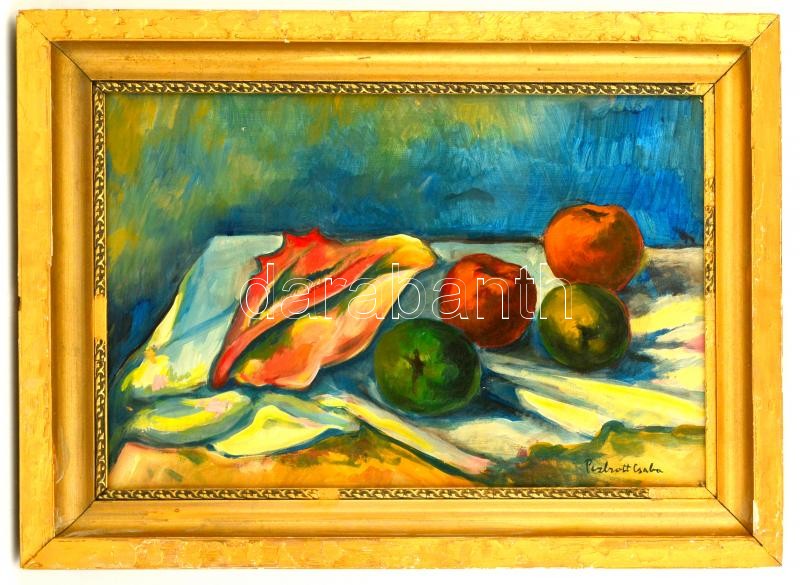 Perlrott jelzéssel: Almás csendélet. Olaj, vászon, sérült, keretben, 3...