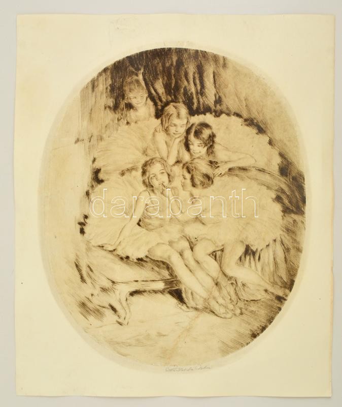 Prihoda István (1891-1965): A kis balerinák. Rézkarc, papír, javított ...