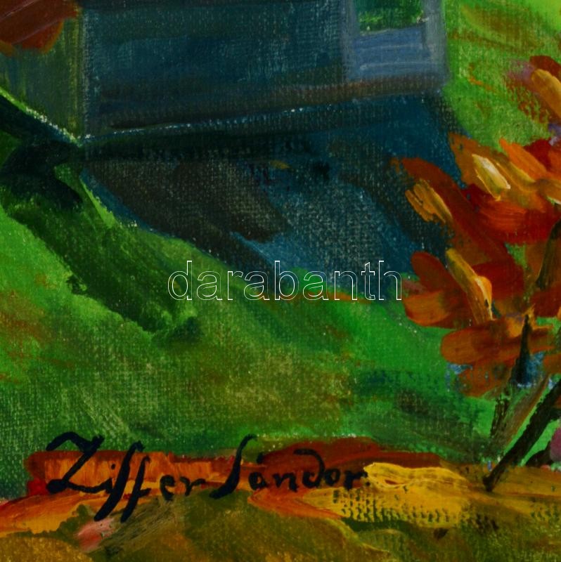 Ziffer jelzéssel: Templom tornyok. Olaj, vászon, 50×70 cm